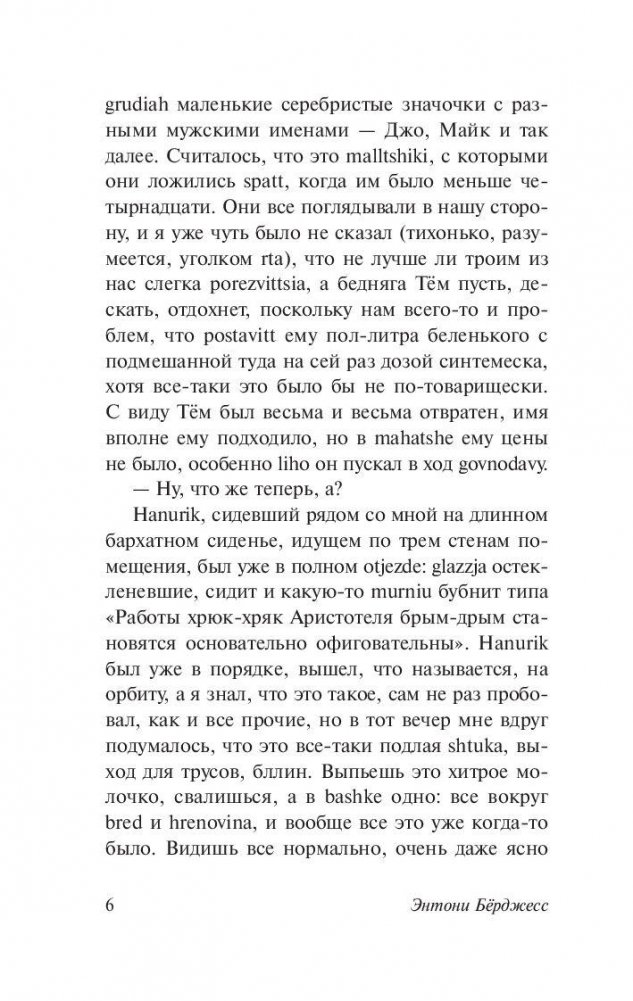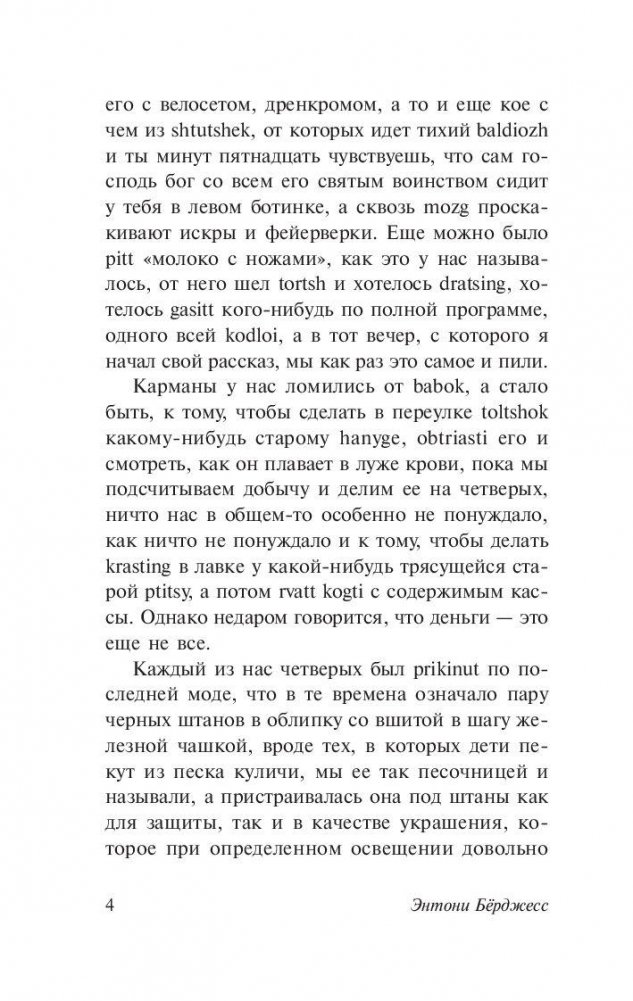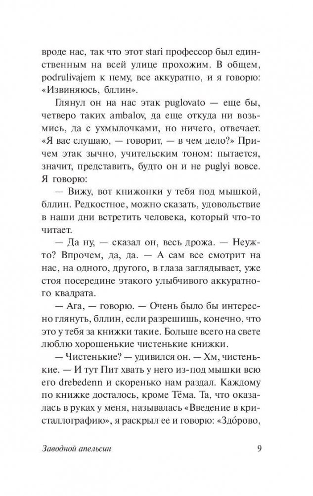 «Заводной апельсин» – литературный парадокс ХХ столетия. Продолжая футуристические традиции в литературе, экспериментируя с языком, на котором говорит рубежное поколение malltshipalltshikov и kisok «надсатых», Энтони Бёрджесс создает роман, признанный классикой современной литературы. Умный, жестокий, харизматичный антигерой Алекс, лидер уличной банды, проповедуя насилие как высокое искусство жизни, как род наслаждения, попадает в железные тиски новейшей государственной программы по перевоспитанию преступников и сам становится жертвой насилия. Можно ли спасти мир от зла, лишая человека воли совершать поступки и превращая его в «заводной апельсин»? Этот вопрос сегодня актуален так же, как и вчера, и вопрос этот автор задает читателю.