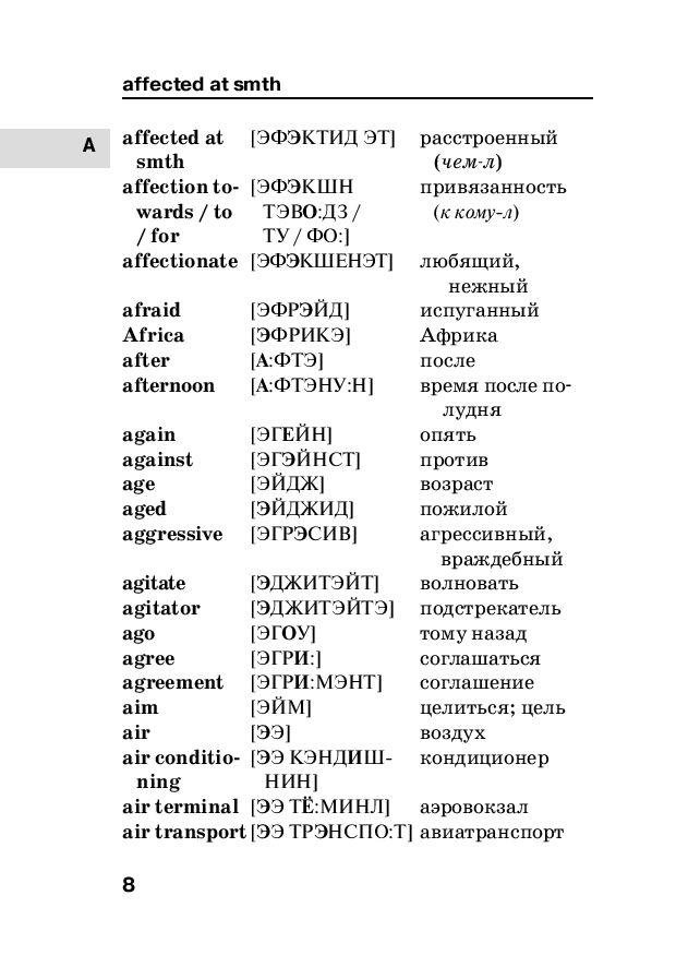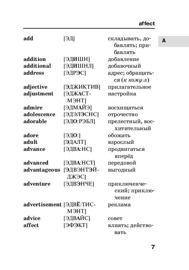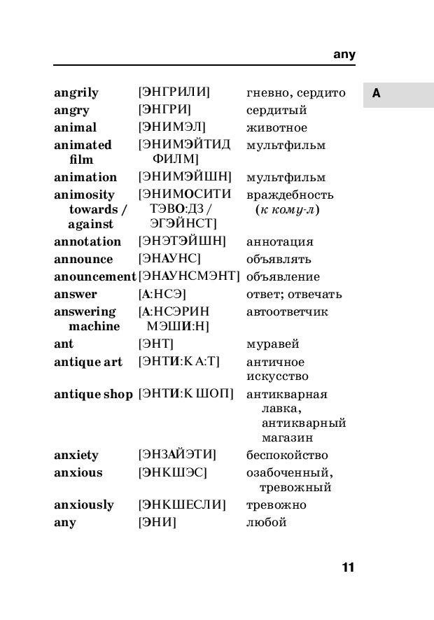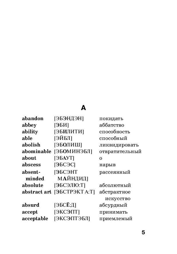 Популярный автор словарей и пособий по иностранным языкам Сергей Матвеев предлагает англо-русский и русско-английский словарь для начинающих учить английский язык. Словарь включает 8000 самых употребительных слов с транскрипцией русскими буквами, причем транскрипцией сопровождаются все английские слова как в англо-русской, так и в русско-английской части. В конце каждой части приведен список неправильных глаголов. В книге также содержатся очень полезные приложения: 100 самых употребительных английских глаголов с их грамматическими формами, Английские синонимы и антонимы, Английские пословицы и афоризмы, Сокращения и термины, используемые в Интернете и др. Издание предназначено для всех, кто учит английский язык.