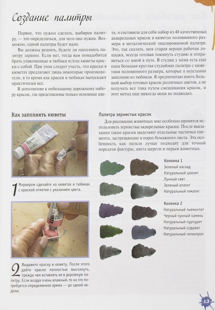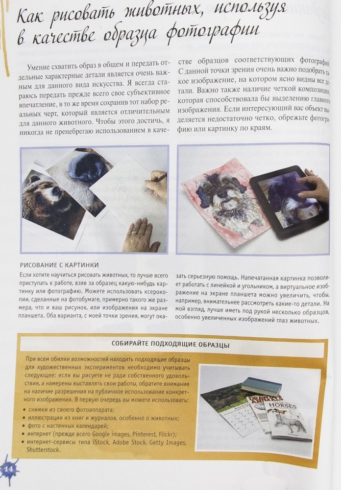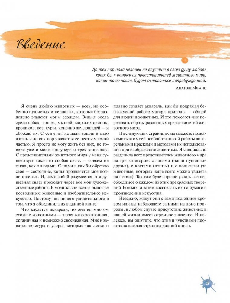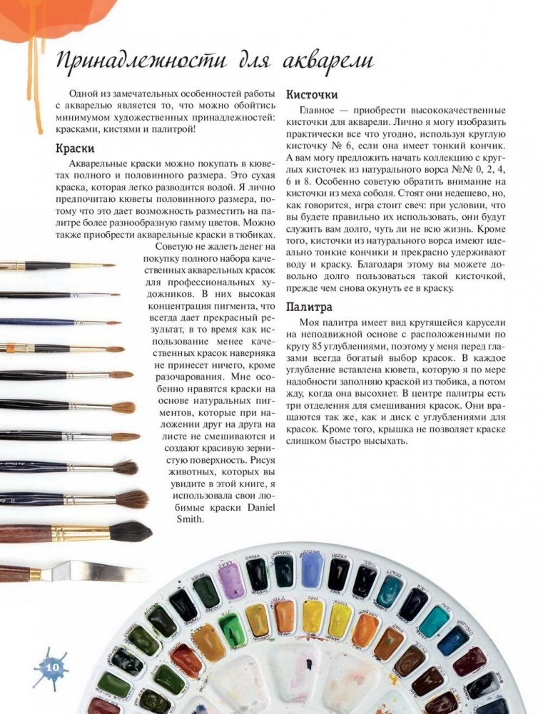 Когда вы познакомитесь с этими вдохновляющими идеями по рисованию животных акварельными красками, у вас не останется никаких отговорок и вы будете просто обязаны взять в руки палитру и кисть! Ведь акварель идеально подходит для передачи пластики наших пушистых друзей, а также фактуры их мягких шубок и перышек. Стоит только немножко поднатореть в технике быстрых натурных набросков - и вы сможете без труда и даже с огромным удовольствием создавать всё новые и новые "портреты" своих четвероногих друзей, доподлинно передавая их внешний облик и характер. В этой книге помимо указаний и практических упражнений вы найдете профессиональные подсказки, простые, но очень ценные секреты мастерства, подробные инструкции по рисованию с фотографии или другого изображения, рекомендации по творческому использованию фона и текста на рисунке.
