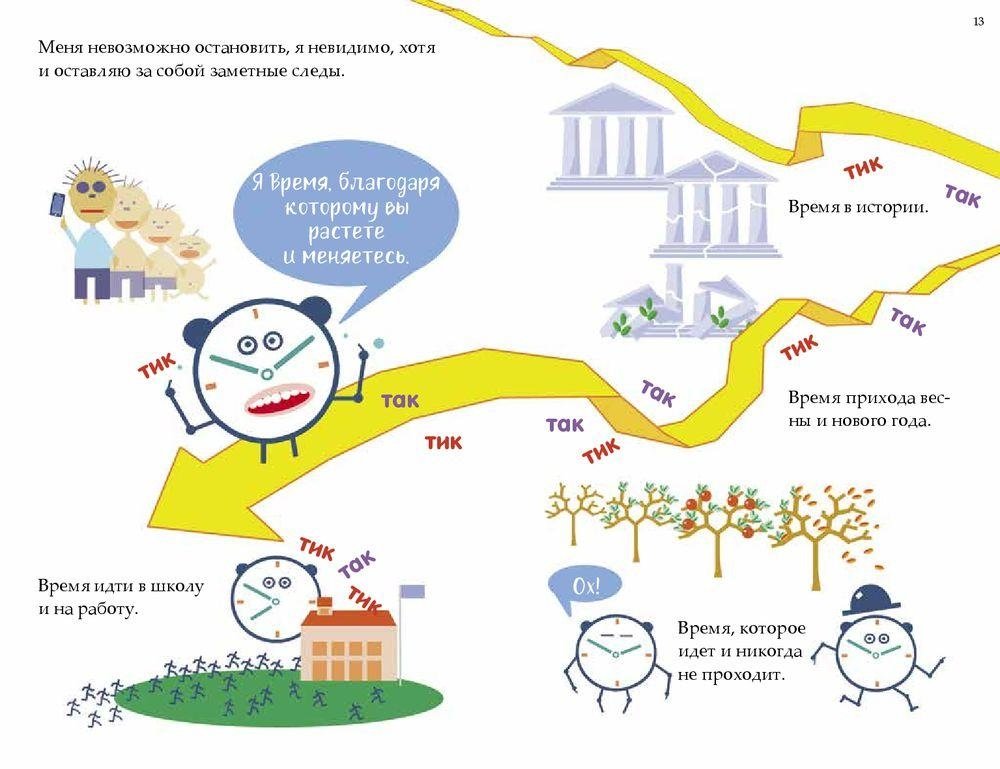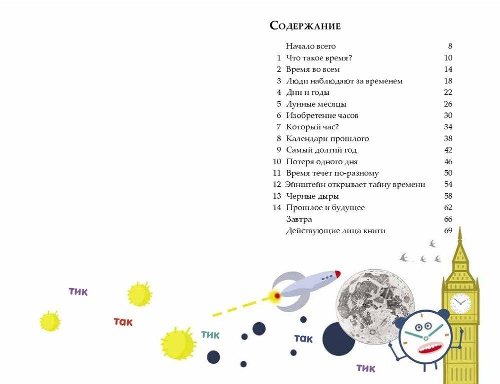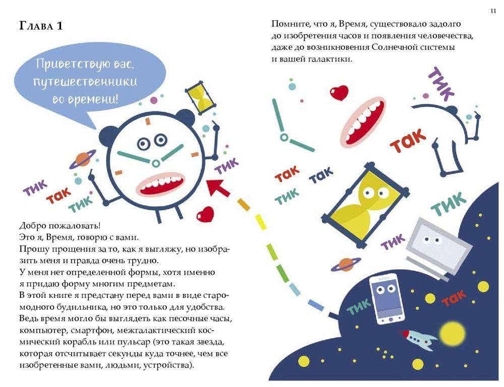 Лука Новелли — писатель, художник, натуралист, путешественник, победитель престижной итальянской премии в области детской научно-популярной литературы. Его книги для детей переведены на 22 языка. Я Время. Прошу прощения за то, как я выгляжу, но изобразить меня и правда очень трудно. У меня нет определенной формы, хотя именно я придаю форму многим предметам. В этой книге я предстану перед вами в виде старомодного будильника, но это только для удобства. Ведь время могло бы выглядеть как песочные часы, компьютер, смартфон, межгалактический космический корабль или пульсар (это такая звезда, которая отсчитывает секунды куда точнее, чем все изобретенные вами, людьми, устройства). Помните, что я, Время, существовало задолго до изобретения часов и появления человечества, даже до возникновения Солнечной системы и вашей галактики. Обычно я говорю с вами с помощью простого тик-так или меняющихся цифр. Но в этой книжке я сделаю исключение и расскажу о себе обычными словами.