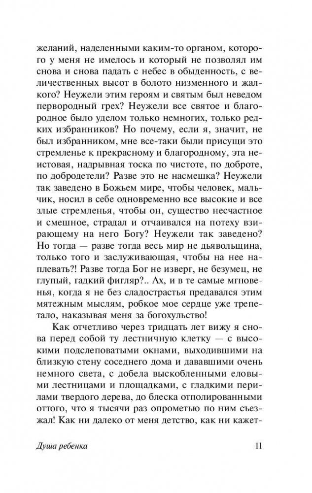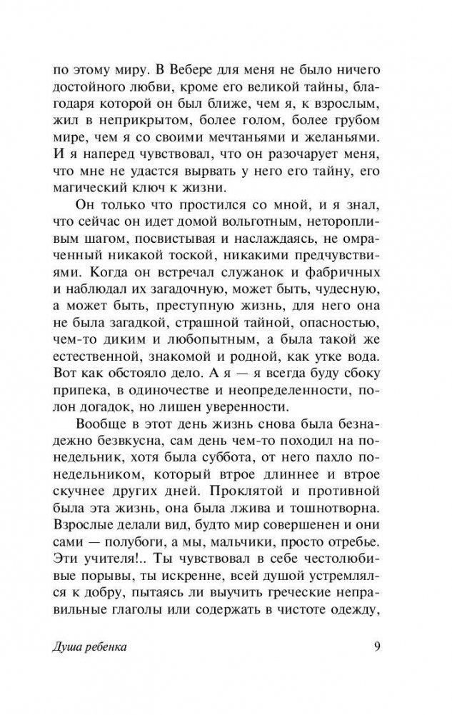 Три повести Германа Гессе — «Душа ребенка», «Клейн и Вагнер», «Последнее лето Клингзора» — впервые были изданы, по настоянию автора, единым сборником еще при его жизни, и с тех пор неизменно публикуются вместе. Но почему сам писатель считал взаимосвязанными столь разные, на первый взгляд, произведения? Что общего у историй о маленьком мальчике, терзаемом муками совести из-за горстки украденных сладостей, мелком служащем, бежавшем за границу с похищенными у фирмы деньгами, и умирающем великом художнике, который проводит в горах последнее лето в своей жизни? Секрет этой не очевидной внутренней связи, на самом деле, прост: герои всех трех повестей Гессе — люди, переживающие кардинальный слом и переоценку собственной системы ценностей.