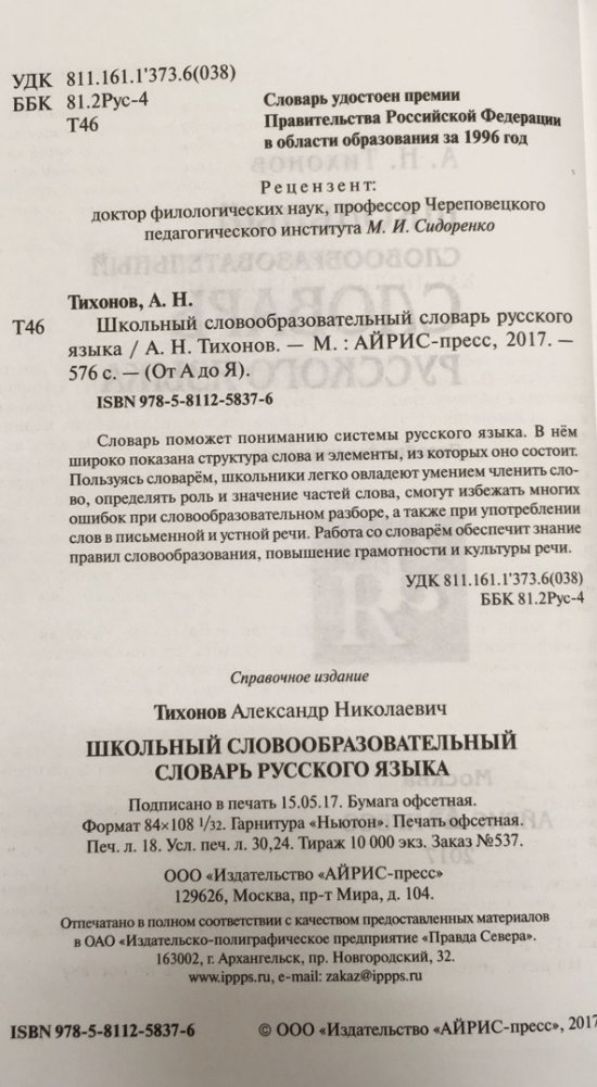 А.Н. Тихонов Школьный словообразовательный словарь русского языка