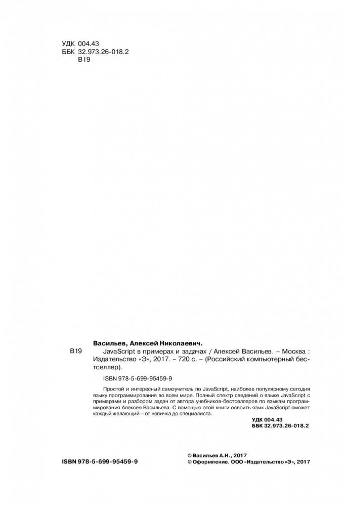 Простой и интересный самоучитель по JavaScript, наиболее популярному сегодня языку программирования во всем мире. Полный спектр сведений о языке JavaScript с примерами и разбором задач от автора учебников-бестселлеров по языкам программирования Алексея Васильева. С помощью этой книги освоить язык JavaScript сможет каждый желающий – от новичка до специалиста.