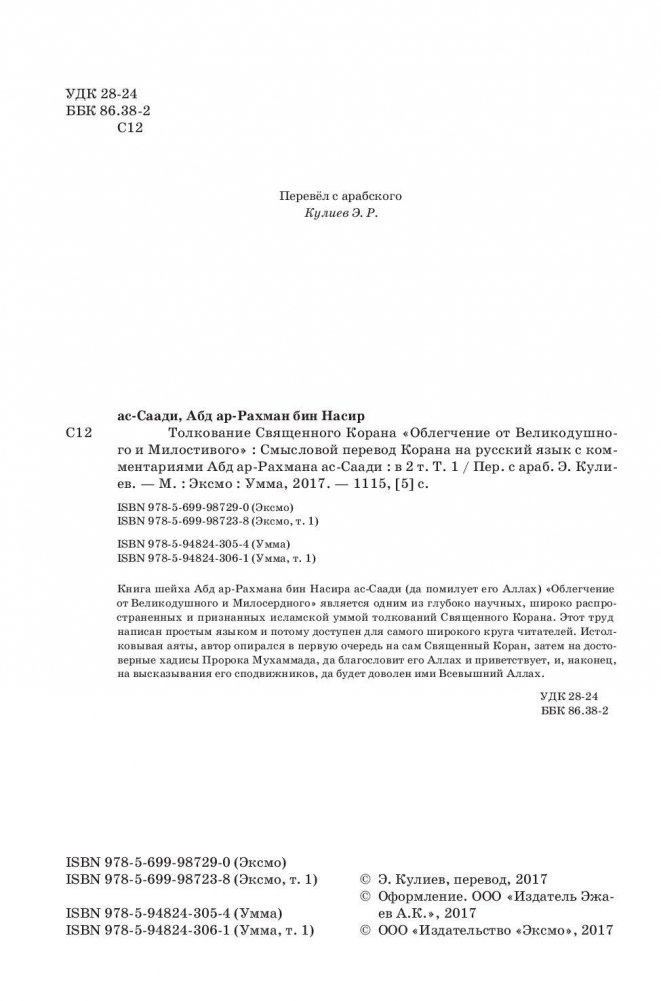 Толкование Священного Корана "Облегчение от Великодушного и Милостивого" (количество томов: 2)