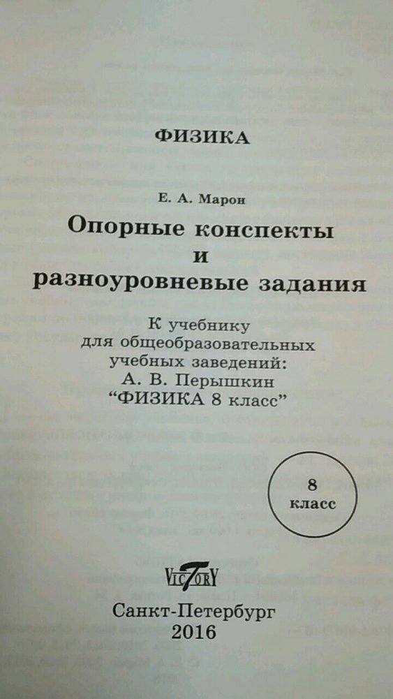 Опорные конспекты и разноуровневые задания. К учебнику для общеобразовательных учебных заведений А.В. Перышкин "Физика. 8 класс" Пособие содержит комплект опорных конспектов и разноуровневых заданий, охватывающих все основные темы курса физики 8 класса. Конспекты и задания могут применяться учителем при изложении нового материала, в ходе опроса, в процессе систематизации знаний, при подготовке к ЕГЭ. Составленные или взятые из различных источников, разноуровневые задания подобраны по степени возрастания сложности: простые (задания уровня "А"), средние (задания уровня "В") и повышенной сложности (задания уровня "С"). Учащиеся имеют возможность самостоятельно или с помощью учителя выбирать группу заданий, постепенно переходя к решению более сложных заданий. Пособие предназначено для 8 класса общеобразовательных учебных заведений и может быть использовано при повторении пройденного материала и при подготовке к Единому Государственному Экзамену по физике.