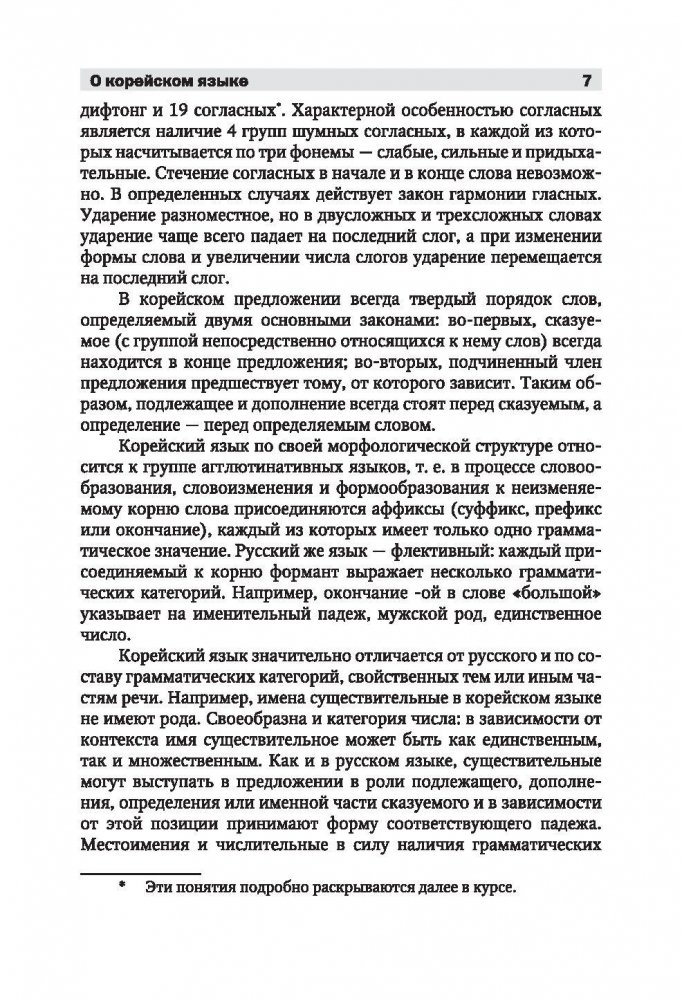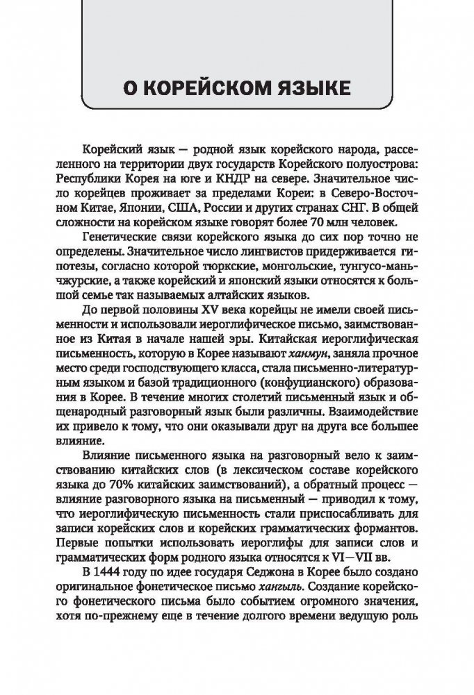Данный курс предназначен для начинающих изучать корейский язык. Учебник содержит материал в объеме, позволяющем овладеть письменной и устной речью в пределах пройденной лексики и грамматики и подготовиться с нуля к международному языковому тестированию TOPIK I. Данное издание состоит из вводно-фонетического (10 уроков) и основного (14 уроков) курсов, корейско-русского и русско-корейского словарей, дополнительной грамматической справки, а также ключей к упражнениям и аудиоскриптов. На прилагаемом аудиодиске записаны упражнения вводно-фонетического курса, позволяющие овладеть корейским произношением, и упражнения основного курса, выполняя которые можно легко научиться воспринимать корейскую речь на слух. Книга может быть использована как для самостоятельного изучения языка, так и для занятий с преподавателем.