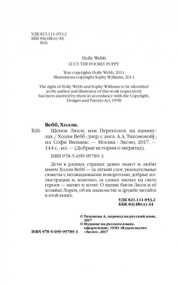 Дети в разных странах давно знают и любят книги Холли Вебб — за лёгкий слог, увлекательные сюжеты с неожиданными поворотами, добрые иллюстрации и, конечно, за самых милых на свете героев — щенят и котят. О щенке бигля Люси и её хозяйке Лорен, об их знакомстве и дружбе читайте в этой книге.