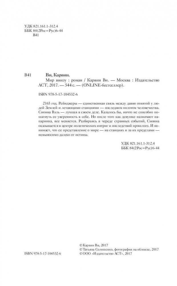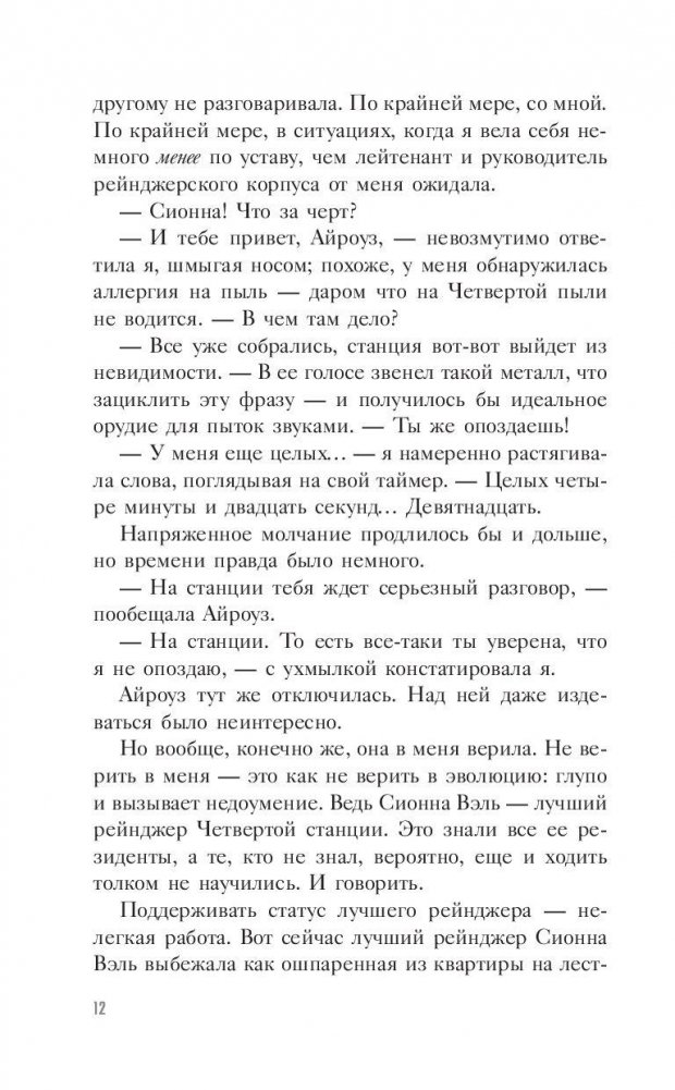 2165 год. Рейнджеры – единственная связь между давно отнятой у людей Землей и летающими станциями – последним оплотом человечества. Сионна Вэль – лучшая в своем деле. Казалось бы, ничто не способно пошатнуть ее уверенность в себе. Но после того как девушке назначают напарника, все меняется. Разбираясь в череде странных событий, Сионна оказывается в центре политических интриг и последствий прошлого. И понимает, что ее представление о мире – на станциях и за их пределами – невыносимо далеко от истины.