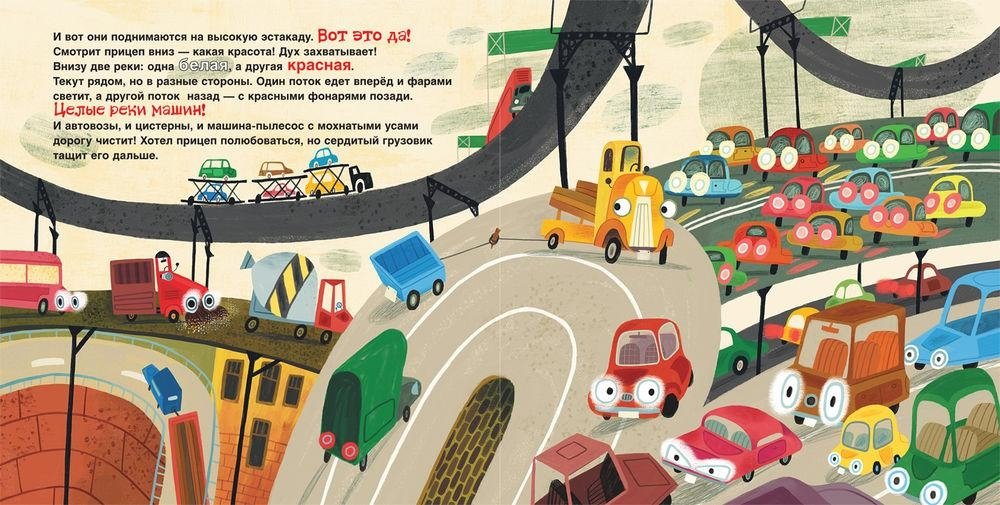 «Грузовик и прицеп едут в командировку» — вторая история про полюбившихся всем малышам героев книги «Это грузовик, а это прицеп» молодой писательницы Анастасии Орловой. Грузовик и прицеп снова отправляются в путь! На этот раз они едут в город, в командировку. Впереди длинная дорога, соревнования с джипом, встреча с миленькой розовой машинкой и много-много приключений.