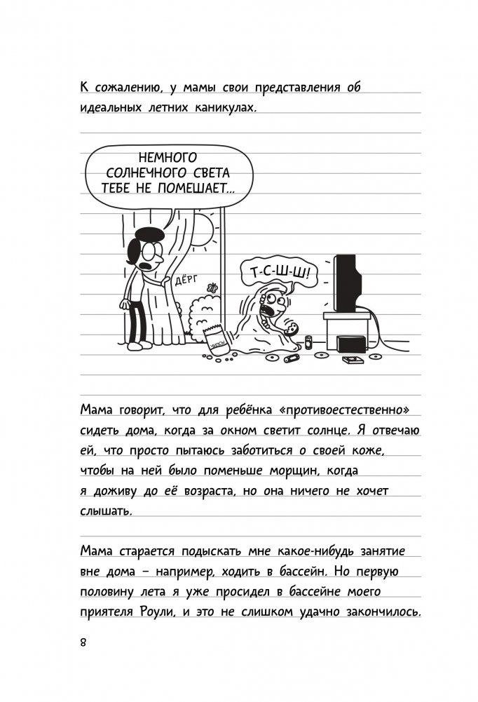 Наступило лето, а Грег Хэффли сидит дома с задёрнутыми шторами и играет в приставку день и ночь напролёт. Это и есть, по его мнению, идеальные летние каникулы! Но что поделать, если мама Грега не одобряет его увлечений и пытается придумать «интересные занятия» для сына. Удастся ли ему настоять на своём или лето будет безнадёжно испорчено?