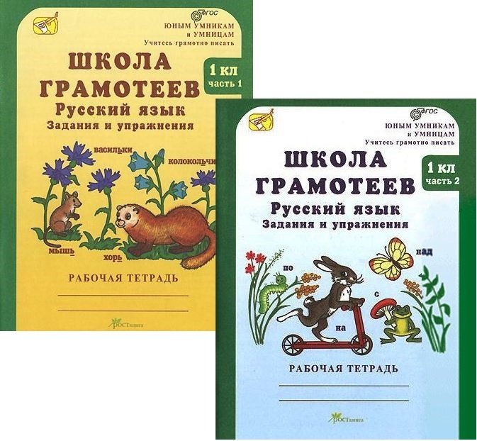 Школа грамотеев. Русский язык. Задания и упражнения. Рабочая тетрадь. 1 класс. ФГОС (количество томов: 2)
