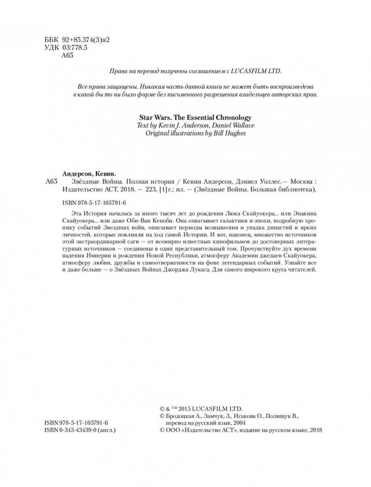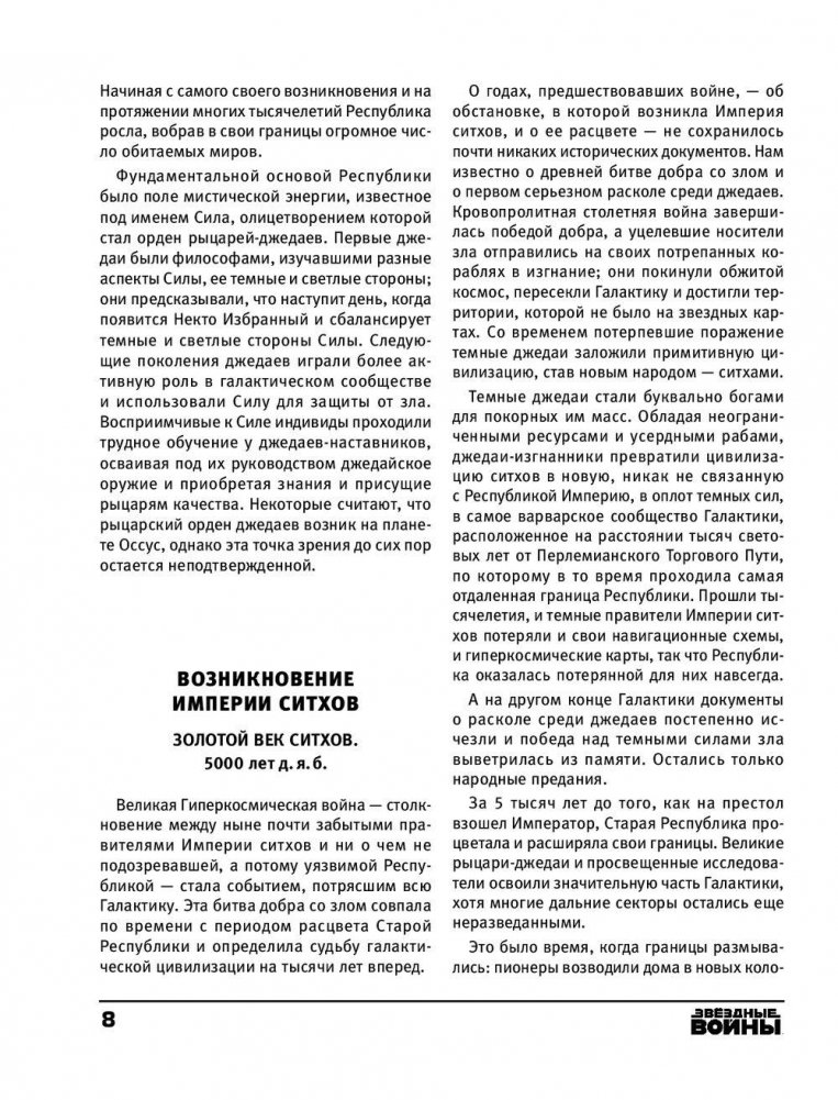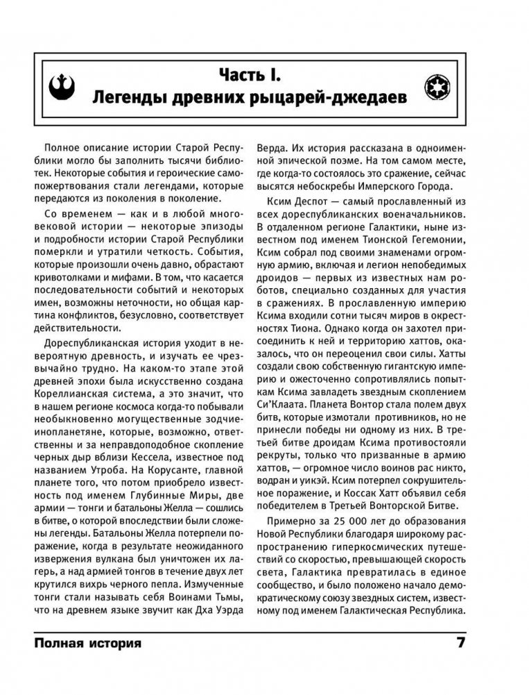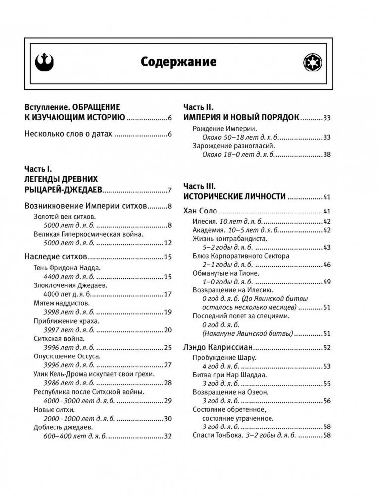 Эта История началась за много тысяч лет до рождения Люка Скайуокера… или Энакина Скайуокера… или даже Оби-Ван Кеноби. Она охватывает галактики и эпохи, подробную хронику событий Звёздных войн, описывает периоды возвышения и упадка династий и ярких личностей, которые повлияли на ход самой Истории. И вот, наконец, множество источников этой экстраординарной саги – от всемирно известных кинофильмов до достоверных литературных источников – соединены в один представительный том. Прочувствуйте дух времени падения Империи и рождения Новой республики, атмосферу Академии джедаев Скайуокера, атмосферу любви, дружбы и самоотверженности на фоне легендарных событий. Узнайте все и даже больше о Звёздных войнах Джорджа Лукаса. Для самого широкого круга читателей.