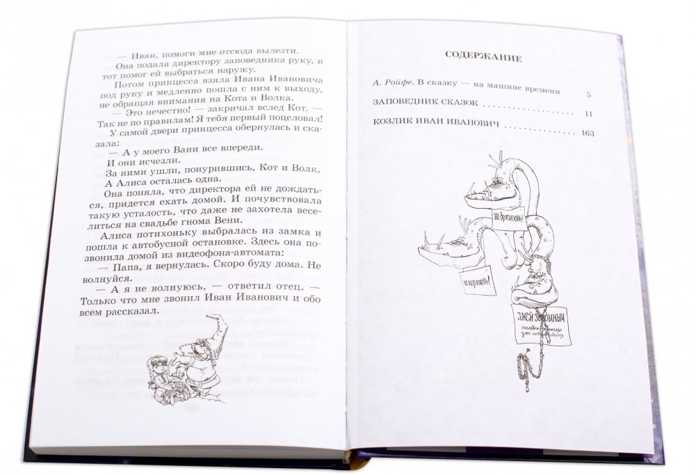 Повести Кира Булычева "Заповедник сказок" и "Козлик Иван Иванович" продолжают цикл книг о приключениях Алисы Селезневой - девочки из будущего. В Заповеднике сказок, где живут самые настоящие сказочные персонажи, пропал директор Иван Иванович Царевич. Обеспокоенные герои сказок просят Алису помочь разоблачить заговор бывшего Папы-яги Кусандры, найти, а затем и расколдовать пропавшего директора. Для этого Алисе придется отправиться в далекую легендарную эпоху. Для среднего школьного возраста.