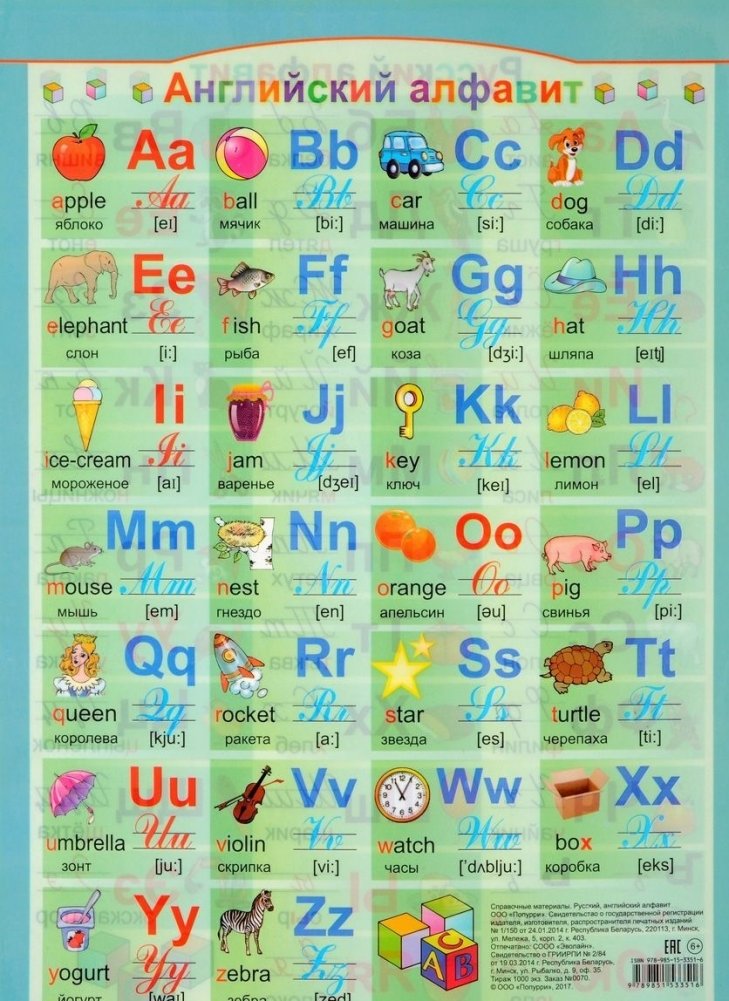 Двусторонний плакат "Русский, английский алфавит"