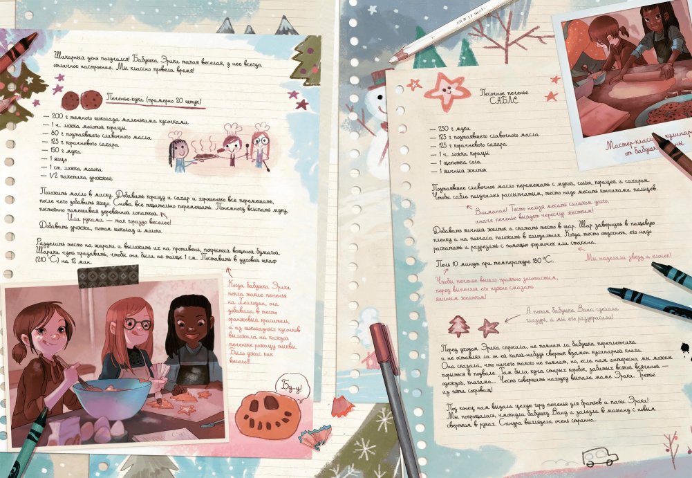 Наступила зима, Вишенка и ее подруги готовятся к праздникам. Пытаясь придумать лучший подарок для мамы, Вишенка попадает в старинное переплетное ателье и знакомится с его владелицей. Одним уютным зимним вечером в сундуке ателье девочки находят посылку с надписью «Первое из пяти сокровищ». Так начинается череда невероятных событий, связывающих воедино судьбы героев. Что это за сокровища и почему они много лет были спрятаны? Какую тайну хранит переплетчица? Детектив Вишенка берется за свое третье расследование. Этот том серии — кладезь уютных зимних сюрпризов. Вас ждут французские рецепты печенья, идеи подарков и совместных развлечений для семьи и друзей, а также по-настоящему теплые иллюстрации и история.