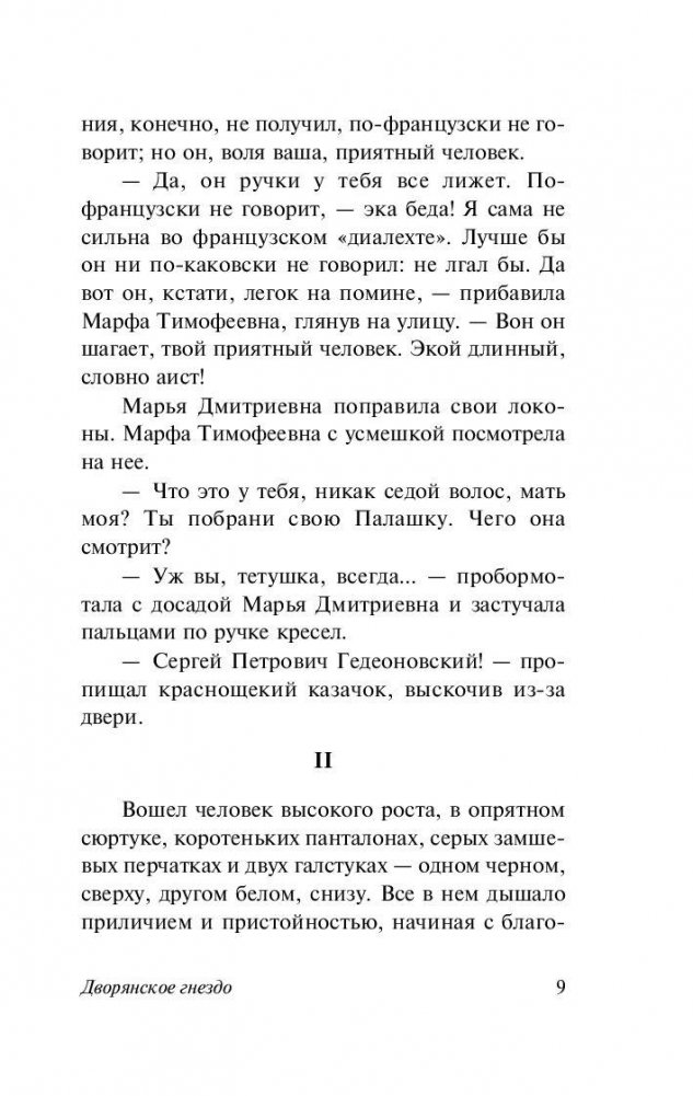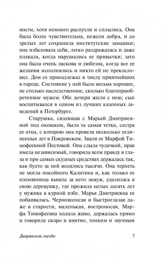«Дворянское гнездо» – один из тончайших и печальнейших романов Тургенева. Поэтичная, удивительно красивая история несбывшейся любви, разбитых надежд и сложной судьбы блестящего, умного человека, совершившего некогда трагическую ошибку и расплачивающегося за нее всю свою жизнь.