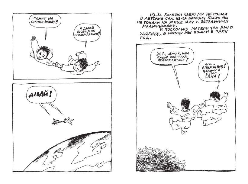 Творческий путь Эдмона Бодуэна трудно назвать обычным: его первая книга вышла в 1981 году, когда Эдмону было почти сорок. До тридцатилетнего возраста Бодуэн работал простым бухгалтером, однако неожиданный поворот судьбы позволил ему посвятить себя делу жизни — рисованию. Сегодня Эдмон Бодуэн — признанный классик авторского комикса, чей индивидуальный поэтический стиль оказал колоссальное влияние на творчество целой плеяды современных художников, причём не только в Европе, но также в Японии и США. «Пьеро» — пожалуй, самое личное произведение Бодуэна, в котором он погружает читателя в атмосферу своего детства, прошедшего на юге Франции. Но это не столько книга-воспоминание, сколько книга-размышление: как сделать так, чтобы детские мечты оставались с нами всю жизнь? Когда, а главное, почему мы перестаём летать? И как продлить детство? Графический роман «Пьеро» включён Министерством образования Франции в список школьного чтения для учащихся средних классов (9-12 лет).