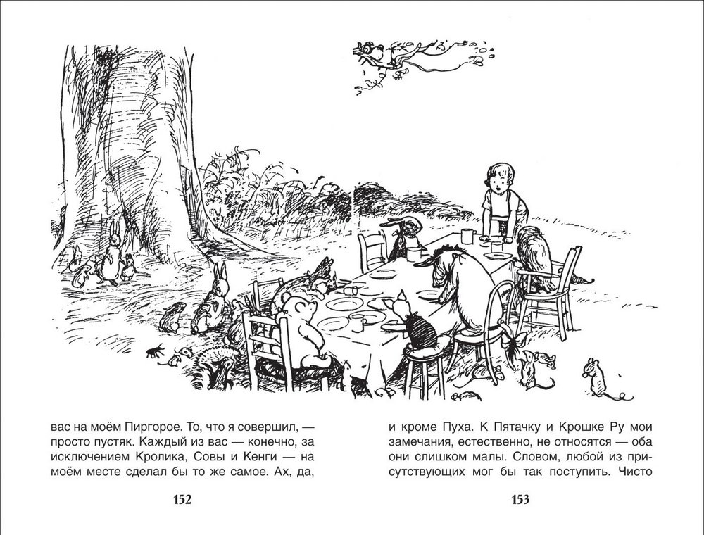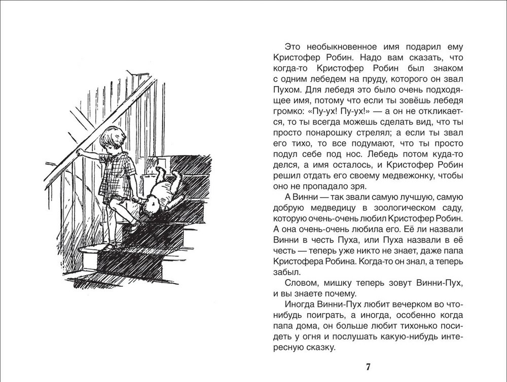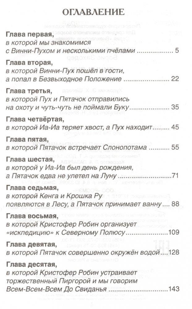 В книгу вошли истории из цикла "Винни-Пух" про веселого, никогда не унывающего медвежонка и его друзей: мальчика Кристофера Робина, поросенка Пятачка, Кролика, ослика Иа-Иа и многих других. Придумал их замечательный английский писатель Алан Милн, а иллюстрации нарисовал знаменитый художник Эрнест Хауард Шепард. На русском языке истории рассказал поэт и переводчик Борис Заходер.