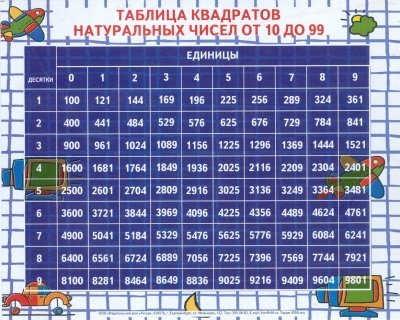 Таблица квадратов натуральных чисел от 10 до 99