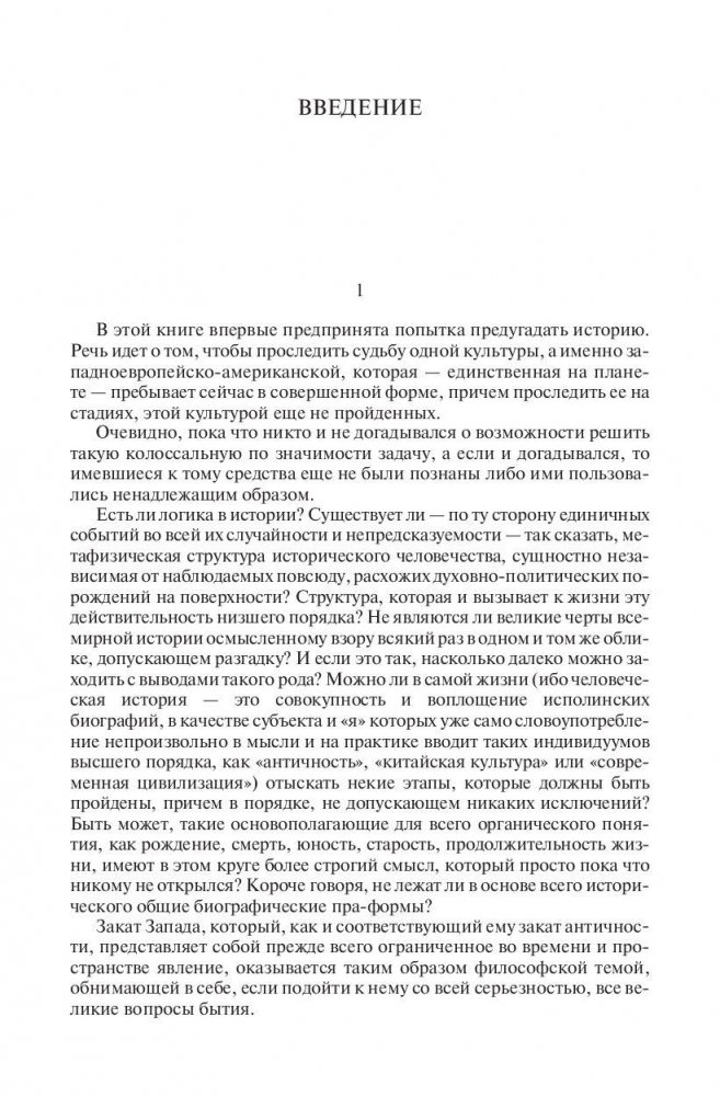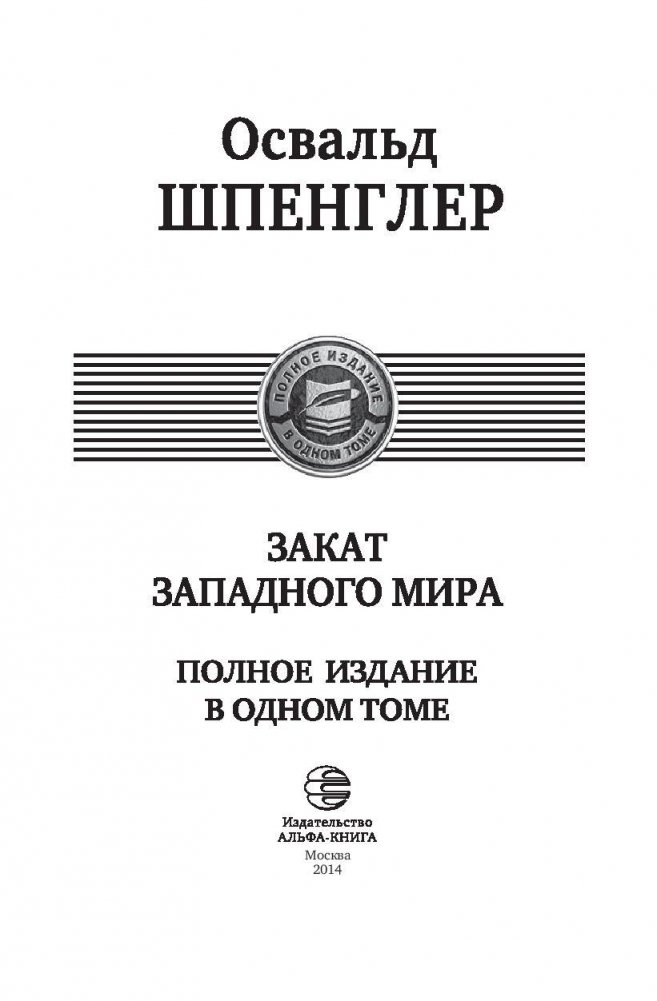 Впервые в одном томе издается всемирно известное сочинение немецкого мыслителя Освальда Шпенглера (1880—1936) «Закат Западного мира» (более знакомое российским читателям под названием «Закат Европы»), в котором он еще в 1923 году предсказал объединение Европы и выдвинул собственную концепцию развития человеческой цивилизации, создал оригинальную классификацию типов человеческой культуры, которые, подобно живым организмам, проходят стадии развития и в итоге умирают, превращаясь в бесплодную механическую цивилизацию. Эта книга Шпенглера оказала огромное влияние на развитие мировой исторической и философской мысли в XX веке.