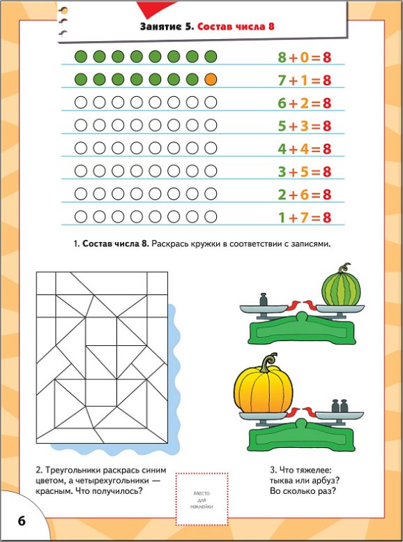 Счет, форма, величина. Для занятий с детьми от 6 до 7 лет. Книжка с игрой и наклейками