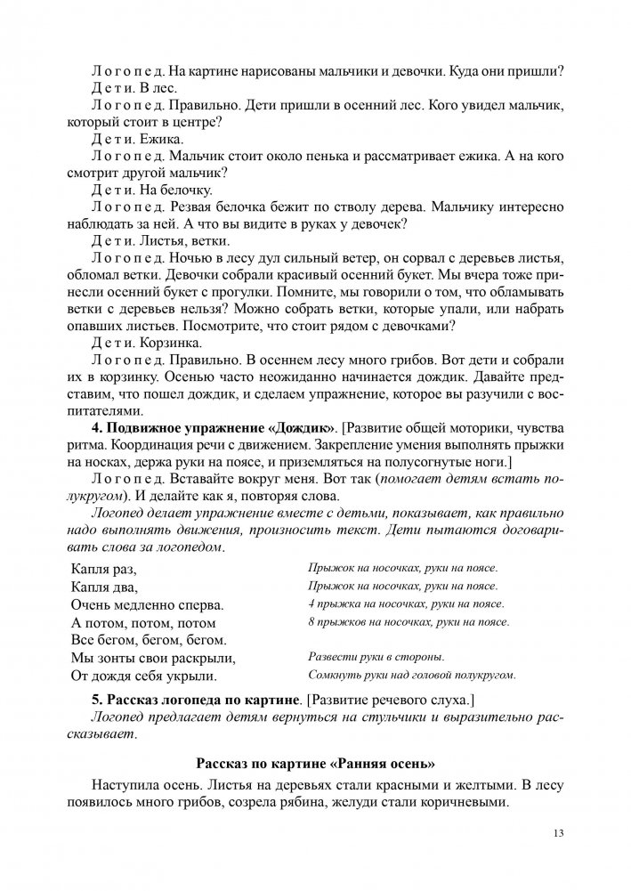 Книга содержит подробное изложение хода подгрупповых занятий логопедических занятий и описание методических приемов, используемых логопедом, цели и задачи в соответствии с заданной лексической темой. Каждое занятие содержит от шести до десяти этапов: игры, задания и упражнения для развития общих речевых навыков, слухового и зрительного внимания и восприятия, формирования и совершенствования лексического состава языка и грамматического строя речи, развития связной речи и речевого общения, фонематических представлений и навыков звукового анализа и синтеза, мимической, артикуляционной, тонкой, общей моторики и т.д. Для логопедов, воспитателей логопедических групп ДОУ.