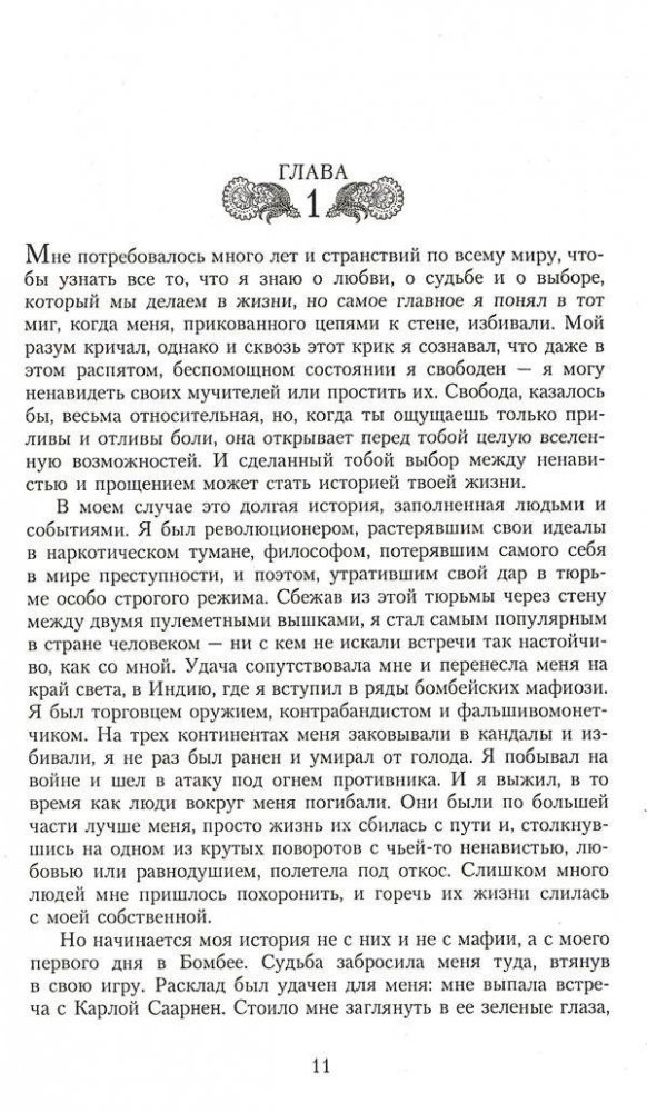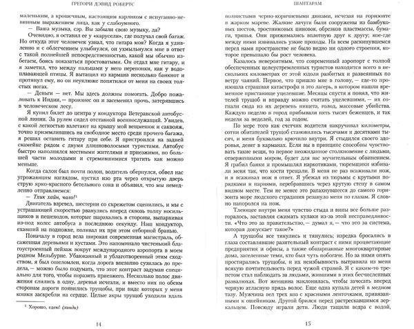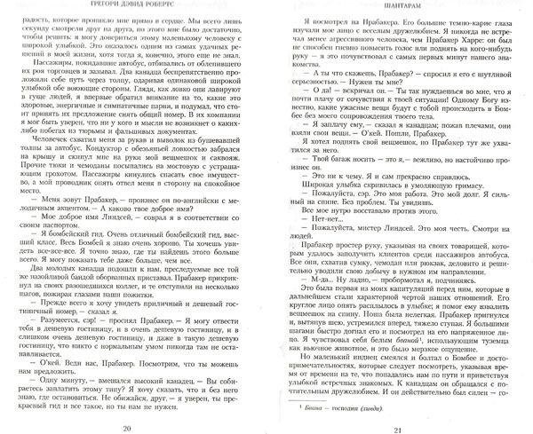 Впервые на русском - один из самых поразительных романов начала XXI века. Эта преломленная в художественной форме исповедь человека, который сумел выбраться из бездны и уцелеть, протаранила все списки бестселлеров и заслужила восторженные сравнения с произведениями лучших писателей нового времени, от Мелвилла до Хемингуэя. Подобно автору, герой этого романа много лет скрывался от закона. Лишенный после развода с женой родительских прав, он пристрастился к наркотикам, совершил ряд ограблений и был приговорен австралийским судом к девятнадцати годам заключения. Бежав на второй год из тюрьмы строгого режима, он добрался до Бомбея, где был фальшивомонетчиком и контрабандистом, торговал оружием и участвовал в разборках индийской мафии, а также нашел свою настоящую любовь, чтобы вновь потерять ее, чтобы снова найти... В 2011 году готовится к выходу экранизация романа, продюсером и исполнителем главной роли в которой выступает несравненный Джонни Депп. "Человек, которого "Шантарам" не тронет до глубины души, либо не имеет сердца, либо мертв, либо то и другое одновременно. Я уже много лет не читал ничего с таким наслаждением. "Шантарам" - это "Тысяча и одна ночь" нашего века. Это бесценный подарок для всех, кто любит читать".