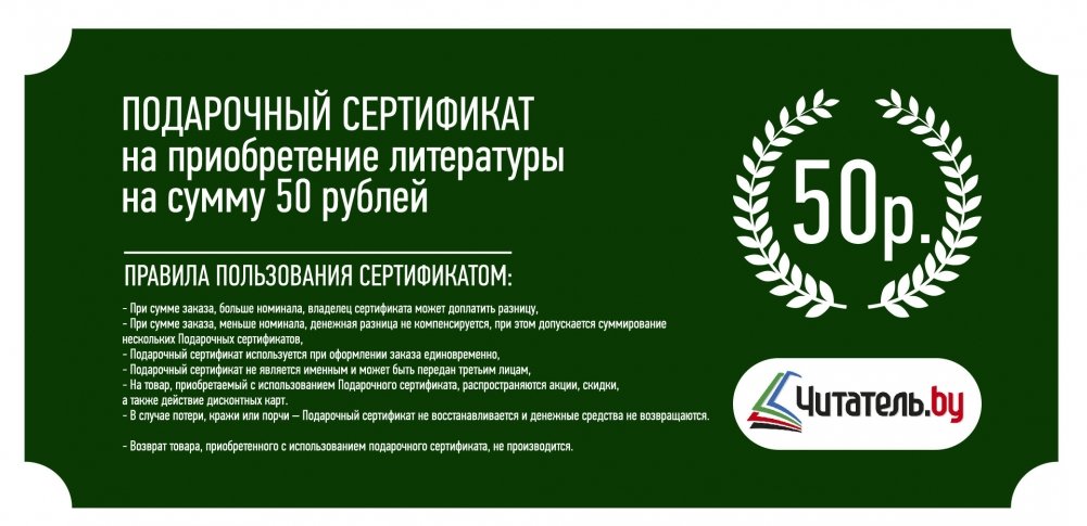 Подарочный сертификат на приобретение литературы номиналом 50 белорусских рублей. Сертификат продается в комплекте с конвертом. В наличии конверты 2-х видов: для детей и взрослых.