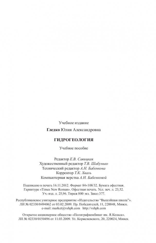 Освещены общие вопросы гидрогеологии, дается системное представление о подземных водах, их происхождении, классификации, составе, условиях движения и формирования. Рассматриваются принципы гидрогеологического районирования, проблемы использования и охраны подземных вод: пресных, минеральных, лечебных, промышленных и теплоэнергетических. Особое внимание уделяется гидрогеологическому районированию и использованию подземных вод Беларуси. Описаны основные водоносные горизонты и комплексы, представлена схема гидродинамической зональности основных гидрогеологических структур и гидрохимической зональности платформенного чехла. Освещаются также проблемы водообеспечения и совершенствования технологий водоснабжения.