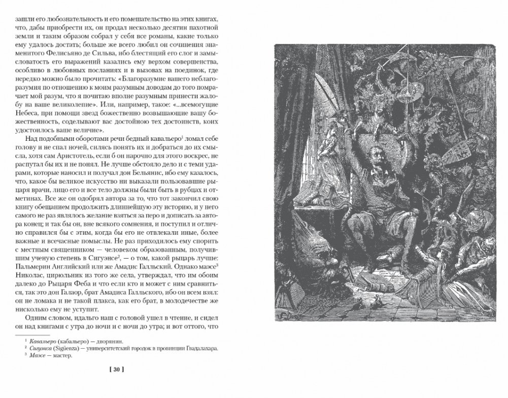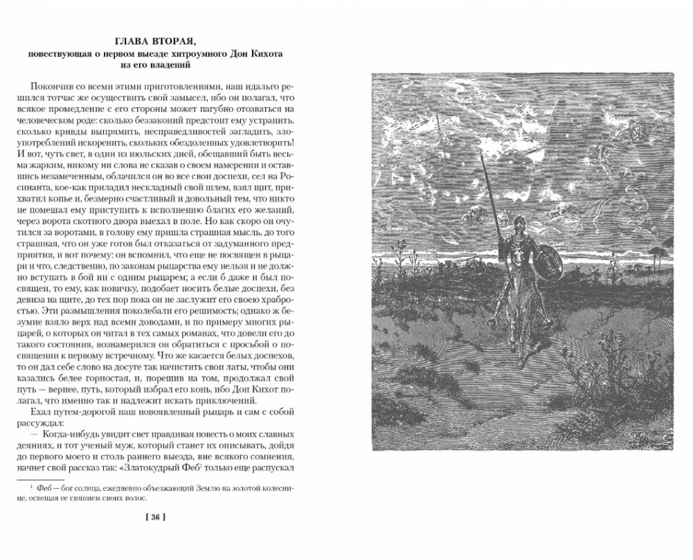 Что можно сказать о лучшем романе Мигеля Сервантеса, что уже не было бы сказано? «Дон Кихоту» четыреста лет и почти все это время он стоит в первой десятке величайших книг человечества. А Нобелевский институт объявил его лучшим художественным произведением за всю историю всемирной литературы. Задуманный как пародия на рыцарские романы – фэнтези того времени – «Дон Кихот» впитал в себя все пласты литературы Возрождения. Мавританские повести, плутовской роман, испанские романсеро, поэмы итальянского Ренессанса – все нашло отражение в этом великом произведении. В свою очередь шедевр Сервантеса оказал колоссальное влияние на развитие мировой литературы и искусства – не случайно Владимир Набоков утверждал, что «читая других романистов, с Дон Кихотом мы в каком-то смысле не расстанемся ни на минуту». Но самое главное, что и спустя четыреста лет «Дон Кихот» остается чертовски увлекательным чтением! В 1855 году выдающийся французский художник-иллюстратор Гюстав Доре отправился в Испанию, на родину «славного рыцаря, чтобы передать местный колорит и увидеть места, которые он прославил своими подвигами». Созданный художником цикл иллюстраций, опубликованный в 1863 году, и по сей день служит украшением все новых и новых переизданий романа Сервантеса на многих языках мира.