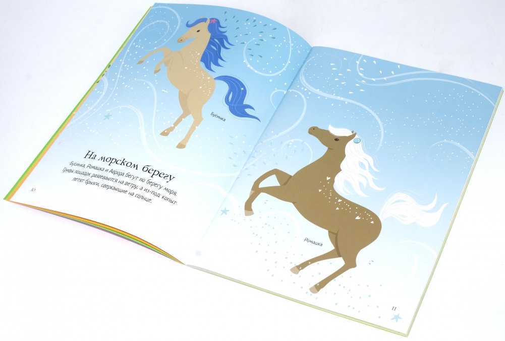 Познакомься с очаровательными лошадками! Побывай на цирковом представлении, посмотри, как лошадки пасутся на прекрасном цветущем лугу и гуляют по морскому побережью. Укрась гривы лошадок красивыми бантиками, цветами и перьями. Читаем и играем! Развиваем внимание, воображение, мелкую моторику и художественный вкус.