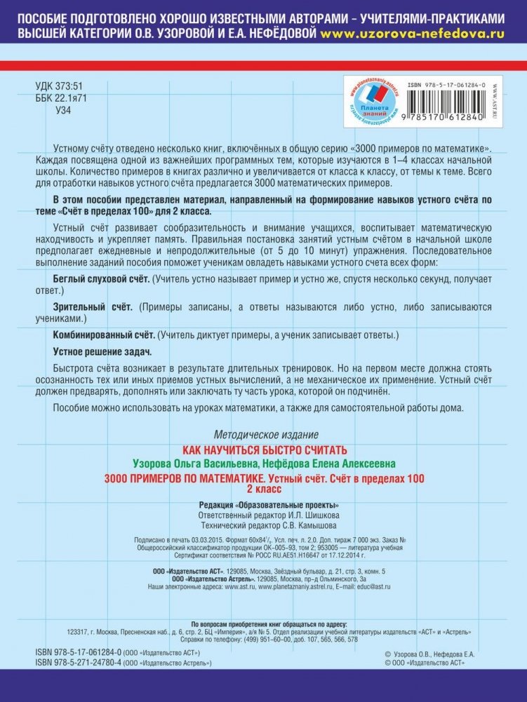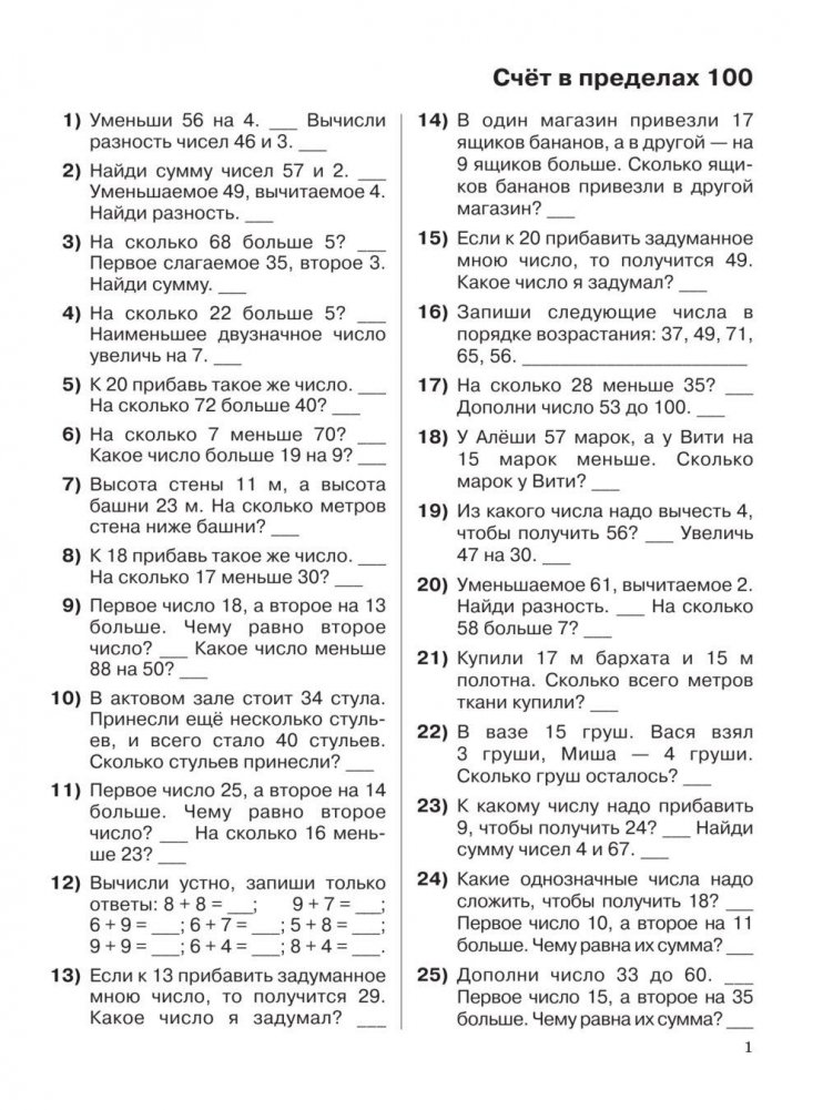 3000 примеров по математике. 2 класс. Устный счет. Счет в пределах 100