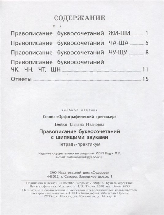 Орфографический тренажёр. Правописание буквосочетаний с шипящими звуками. ФГОС