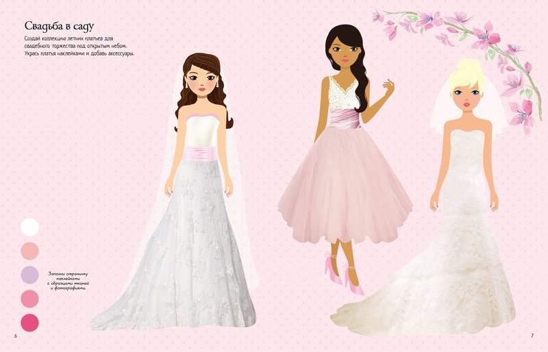 Свадьба – чудесное событие! Подбери невестам эффектные платья, фату и букеты для этого особенного дня. Ты также сможешь нарядить подружек невесты и гостей! Читаем и играем! Развиваем внимание, воображение, мелкую моторику и художественный вкус.