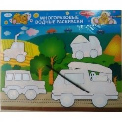 Водные раскраски — это изображения героев мультфильмов, сказок, фруктов, овощей, автомобилей, самолётов, супергероев, животных, кукол, пейзажей, пропитанные специальным раствором. Раствор реагирует на контакт с водой, раскраска приобретает цвет. После высыхания она снова становится белой, её можно раскрашивать заново. Водная раскраска не требует красок, карандашей, фломастеров, ничего красящего, достаточно будет простой воды.